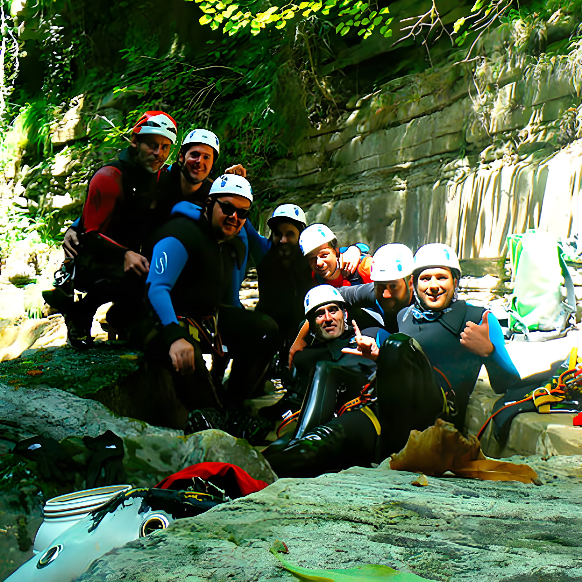 - Equipo de barrancos individual (casco, arnés equipado para barrancos, traje de neopreno de 2 piezas 5 mm, escarpines 3 mm).