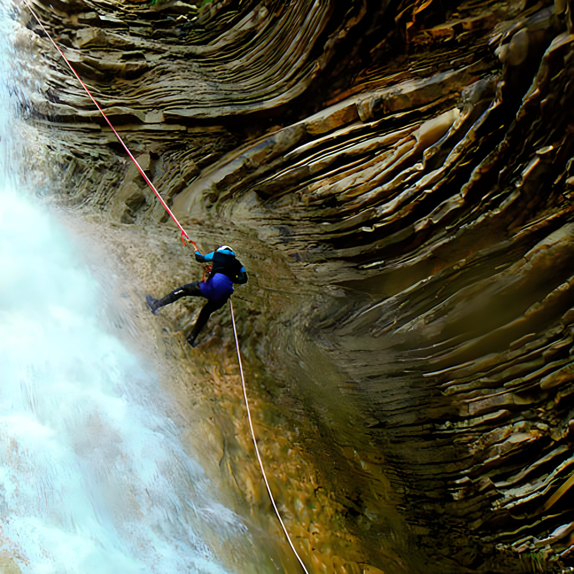 - Equipo de barrancos individual (casco, arnés equipado para barrancos, traje de neopreno de 2 piezas 5 mm, escarpines 3 mm).
